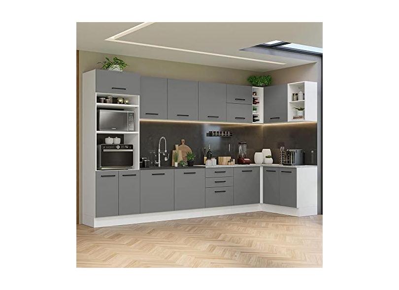 Armário de Cozinha Completa de Canto 499cm Branco/cinza Agata Madesa 01