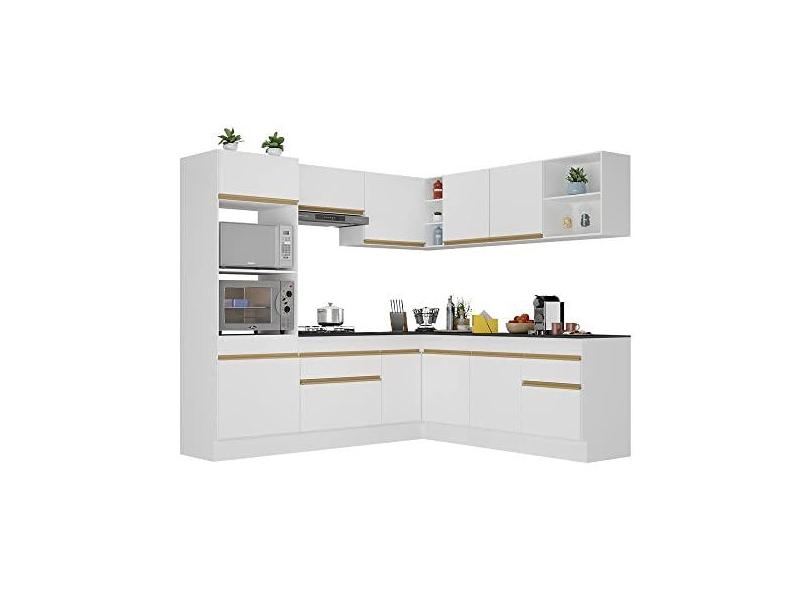 Armário de Cozinha Completa de Canto com Rodapé Veneza Multimóveis V2080 Branco/dourado