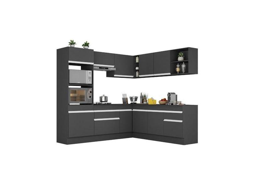 Armário de Cozinha Completa de Canto com Rodapé Veneza Multimóveis V2080 Preto/branco