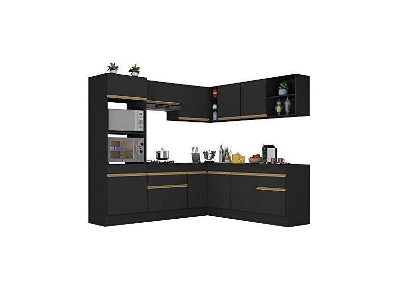 Armário de Cozinha Completa de Canto com Rodapé Veneza Multimóveis V2080 Preto/dourado