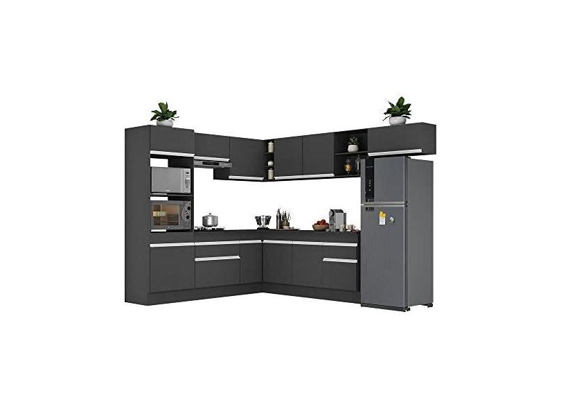Armário de Cozinha Completa de Canto com Rodapé Veneza Multimóveis V2083 Preto/branco