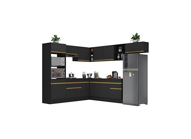 Armário de Cozinha Completa de Canto com Rodapé Veneza Multimóveis V2083 Preto/dourado