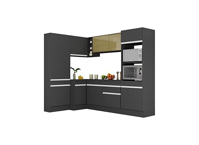 Armário de Cozinha Completa de Canto com Rodapé Veneza Multimóveis V2085 Preto/branco