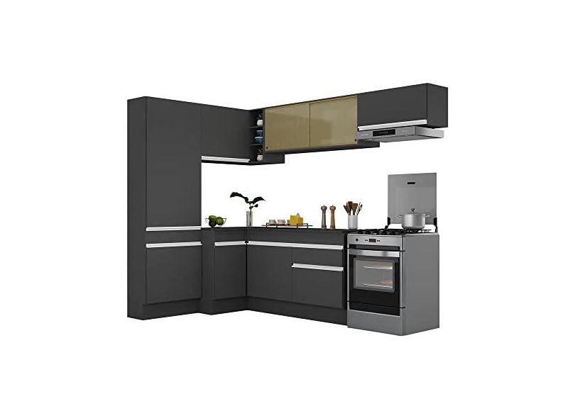 Armário de Cozinha Completa de Canto com Rodapé Veneza Multimóveis V2087 Preto/branco