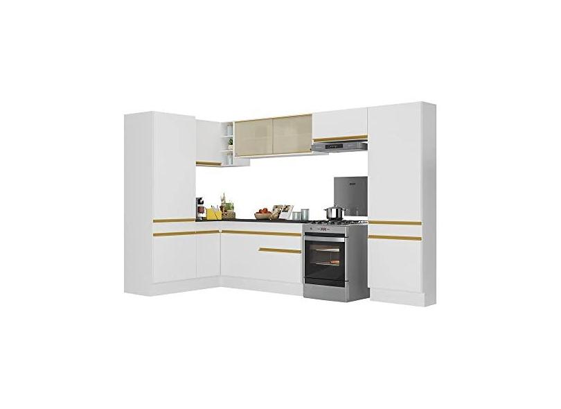 Armário de Cozinha Completa de Canto com Rodapé Veneza Multimóveis V2090 Branco/dourado