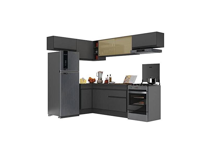 Armário de Cozinha Completa de Canto com Rodapé Veneza Multimóveis V2095 Preto