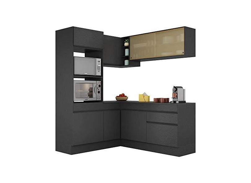 Armário de Cozinha Completa de Canto com Rodapé Veneza Multimóveis V2098 Preto