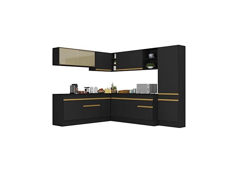 Armário de Cozinha Completa de Canto com Rodapé Veneza Multimóveis V2100 Preto/dourado