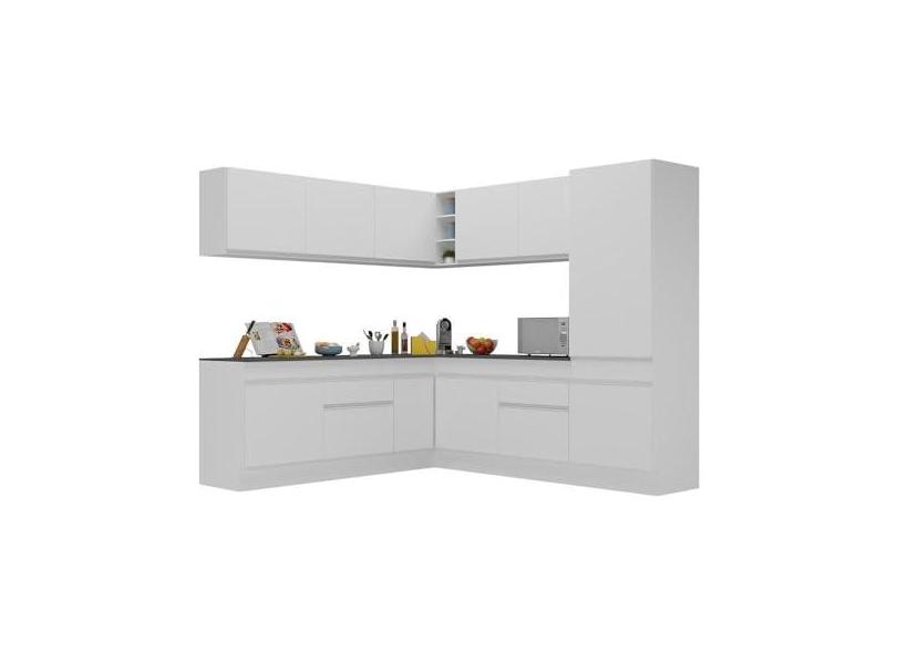 Armário de Cozinha Completa de Canto com Rodapé Veneza Multimóveis V2101 Branco