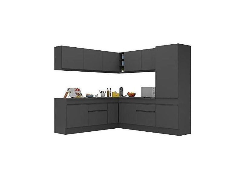 Armário de Cozinha Completa de Canto com Rodapé Veneza Multimóveis V2101 Preto