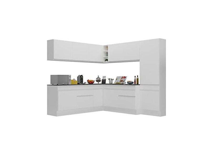 Armário de Cozinha Completa de Canto com Rodapé Veneza Multimóveis V2102 Branco