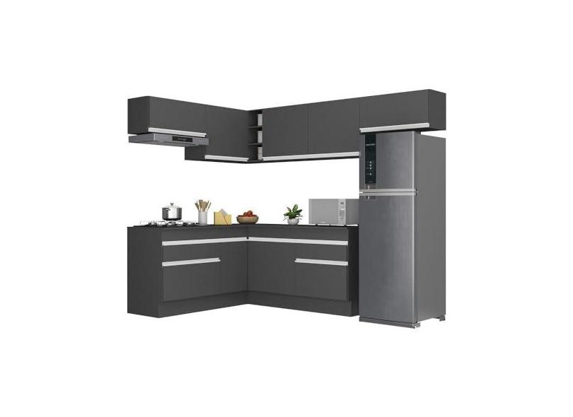 Armário de Cozinha Completa de Canto com Rodapé Veneza Multimóveis V2104 Preto/branco