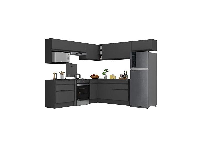 Armário de Cozinha Completa de Canto com Rodapé Veneza Multimóveis V2106 Preto