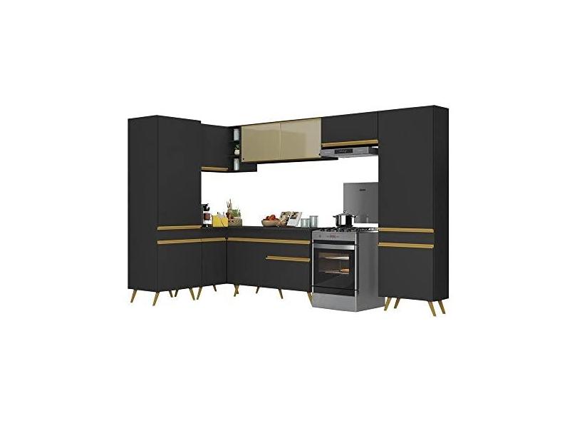 Armário de Cozinha Completa de Canto Veneza Multimóveis V2055 Preto/dourado