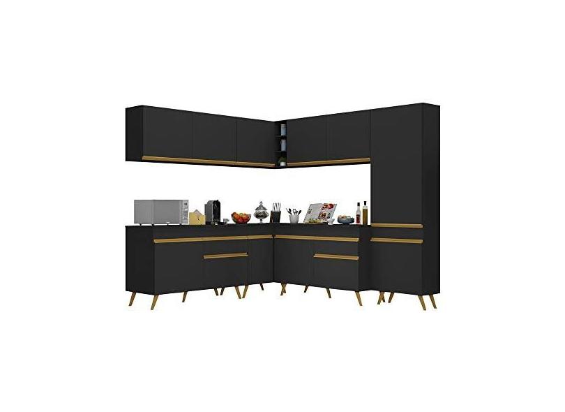 Armário de Cozinha Completa de Canto Veneza Multimóveis V2067 Preto/dourado