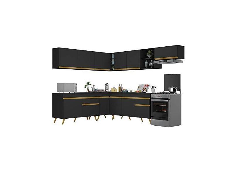Armário de Cozinha Completa de Canto Veneza Multimóveis V2068 Preto/dourado