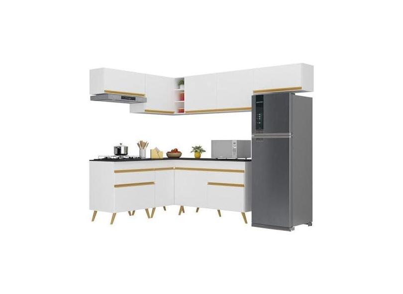 Armário de Cozinha Completa de Canto Veneza Multimóveis V2069 Branco/dourado