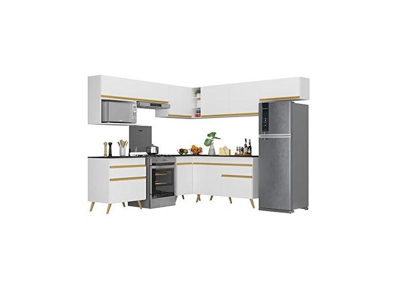 Armário de Cozinha Completa de Canto Veneza Multimóveis V2071 Branco/dourado