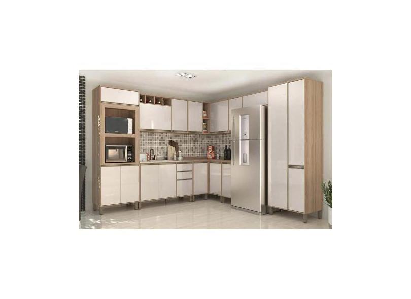 Armário de Cozinha Completa Modulada 10 Peças com Tampo e Vidro Reflec