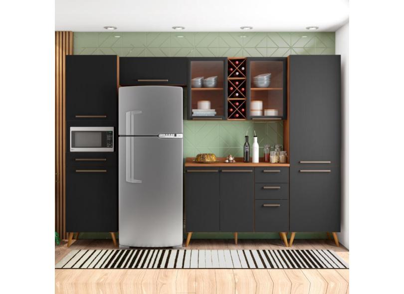 Armário De Cozinha Completa Vidro Reflecta Com Adega 9 Portas 4 Gavetas Favorita Preto / Nature