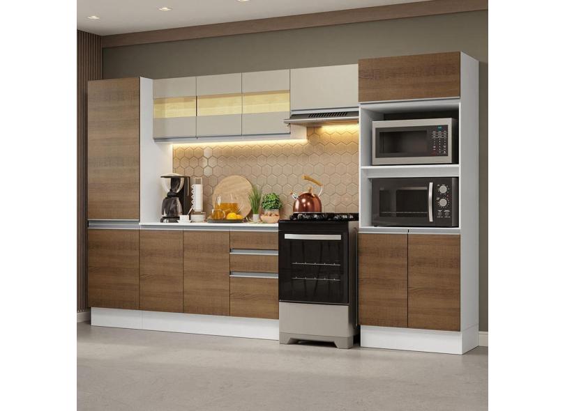 O menor preço encontrado no Brasil para Armário de Cozinha Completo 100% MDF 300cm Branco/rustic atualmente é R$ 1.874,39.