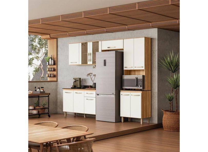 O menor preço encontrado no Brasil para Armário de Cozinha Completo com Balcão 261x208cm Fit Nicioli Freijó Off White atualmente é R$ 1.362,60.