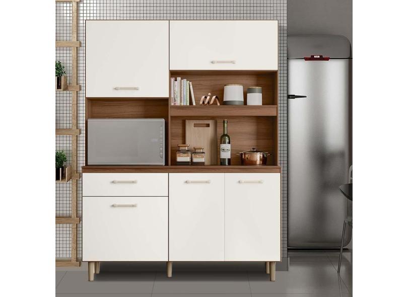 Armário De Cozinha Completo Pequeno 5 Portas 1 Gaveta 140cm Avelã Off White Cristal Sterling Jm Móveis