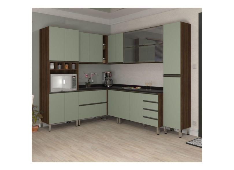 Armário De Cozinha De Canto C/8 Peças Dourado/Verde/Preto