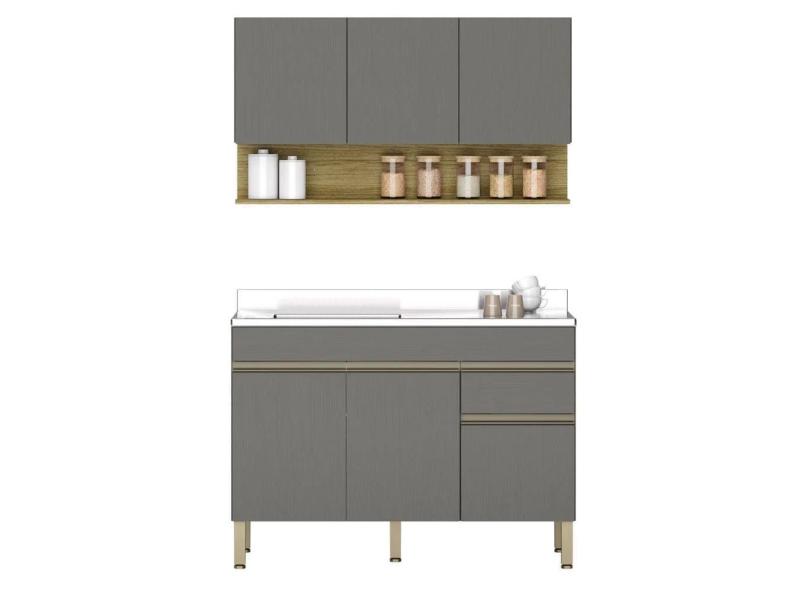 Armário De Cozinha E Balcão Com Pia 120cm Lina K02 Gris/Freijó - Mpozenato