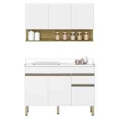 O menor preço encontrado no Brasil para Armário de Cozinha e Balcão com Pia 120cm Lina K02 Supremo/Freijó - Mpozenato atualmente é R$ 932,90.
