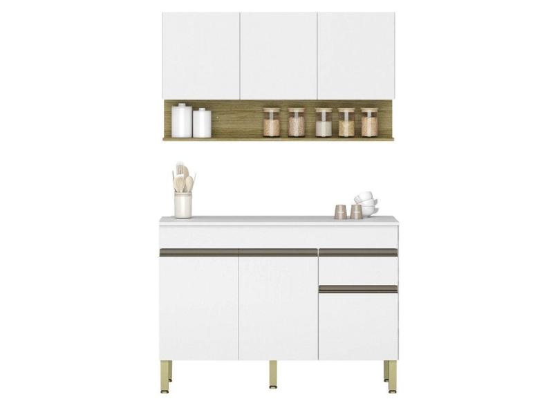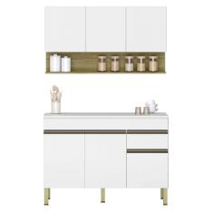 Armário de Cozinha e Balcão com Tampo 150cm Lina K02 Supremo/Freijó - Mpozenato