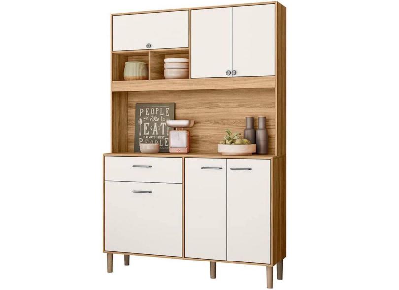 Armário de Cozinha Erva Doce 120cm 6 Portas 1 Gaveta Nicioli Cor Freijó Off White