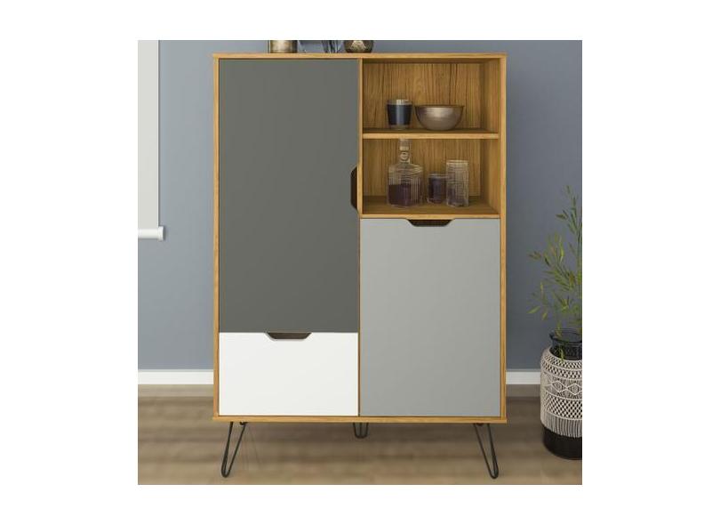 Armário de Cozinha Estocolmo 2 Portas 1 Gaveta Carvalho/Grafite/Branco