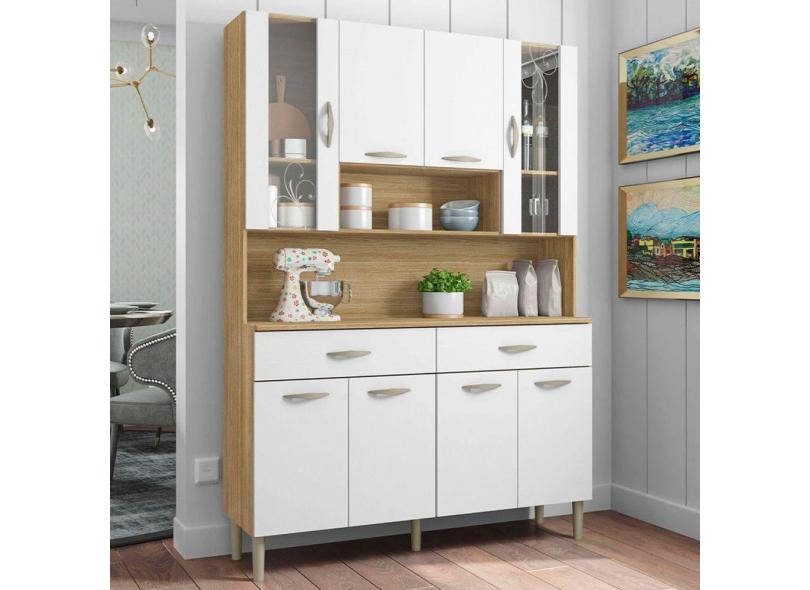 Armário de Cozinha Golden 8 Portas 2 Gavetas com Vidro Freijó/Supremo - Kits Paraná