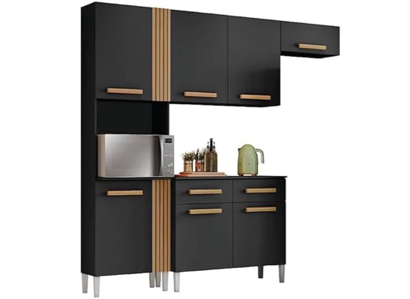 Armário de Cozinha Juma 7 Portas 2 Gavetas Aramoveis Cor Preto Atacama