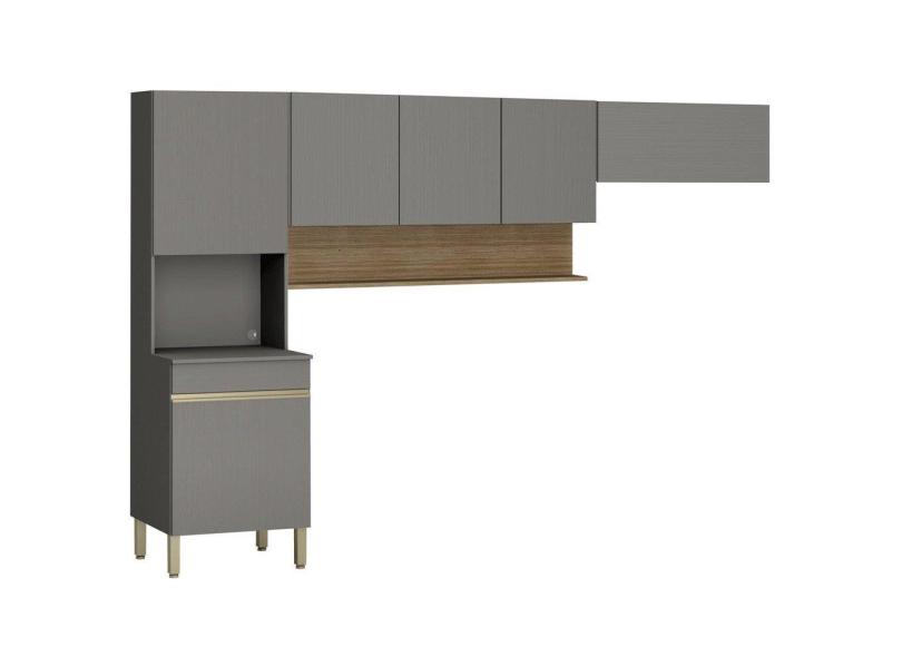 Armário de Cozinha Modulada 3 Peças Lina01 K02 Gris/Freijó - Mpozenato