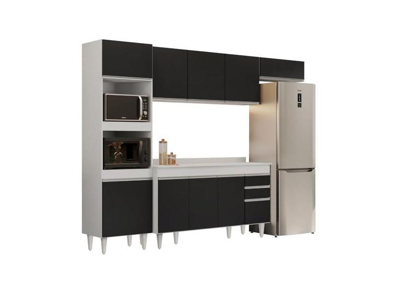 Armário de Cozinha Modulada 4 Peças CP11 Balcão com Tampo Branco/Preto - Lumil