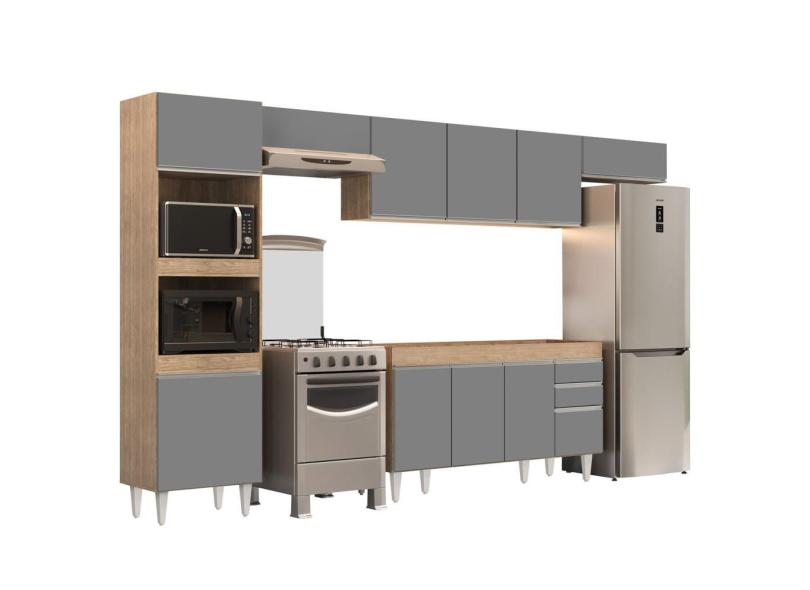 Armário De Cozinha Modulada 5 Peças Cp13 Balcão Castanho/Cinza - Lumil