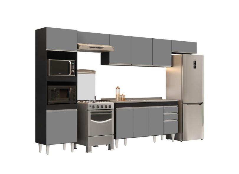 Armário De Cozinha Modulada 5 Peças Cp15 Com Pia Inox Preto/cinza - Lumil