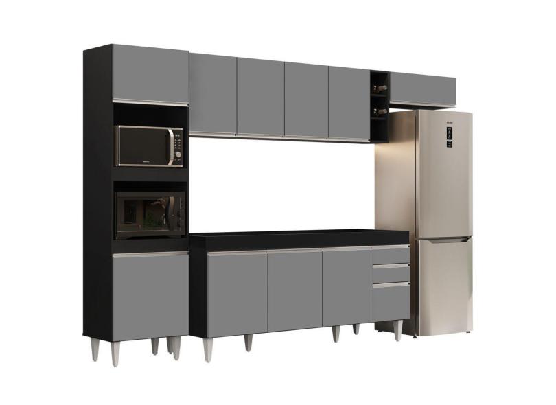 Armário De Cozinha Modulada 5 Peças Cp16 Balcão Sem Tampo Preto/cinza - Lumil
