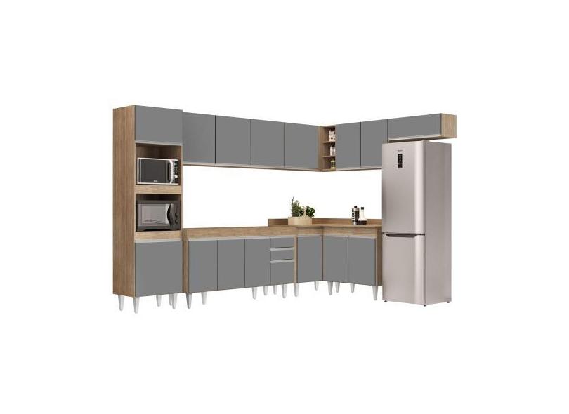 Armário De Cozinha Modulada De Canto 8 Peças Cp07 Balcão Castanho/Cinz