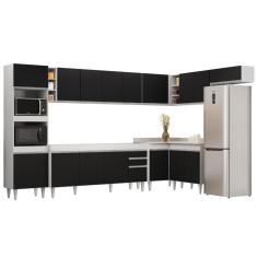 Armário de Cozinha Modulada de Canto 9 Peças CP04 Balcão Branco/Preto - Lumil