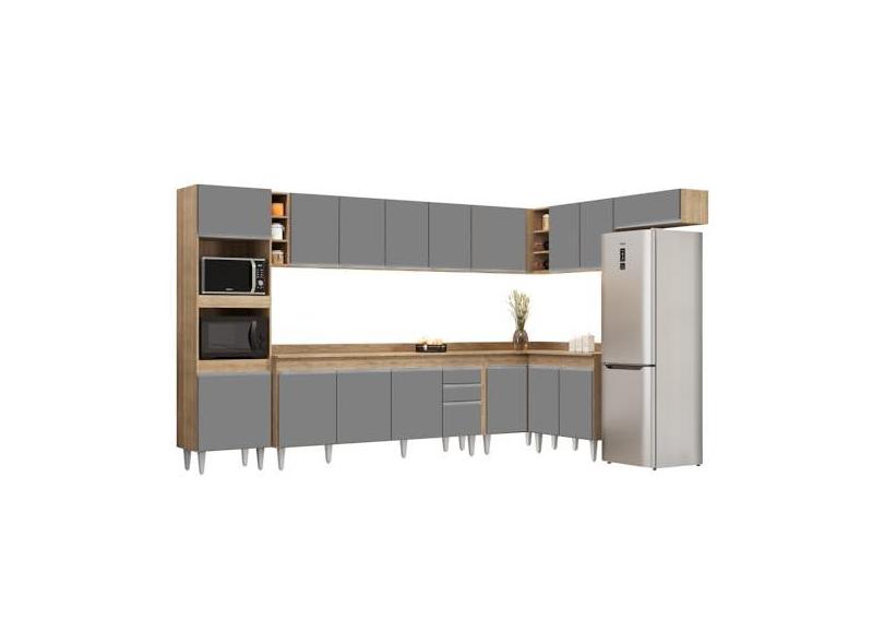 O menor preço encontrado no Brasil para Armário de Cozinha Modulada de Canto 9 Peças CP05 Balcão com Tampo Castanho/Cinza - Lumil atualmente é R$ 3.086,18.