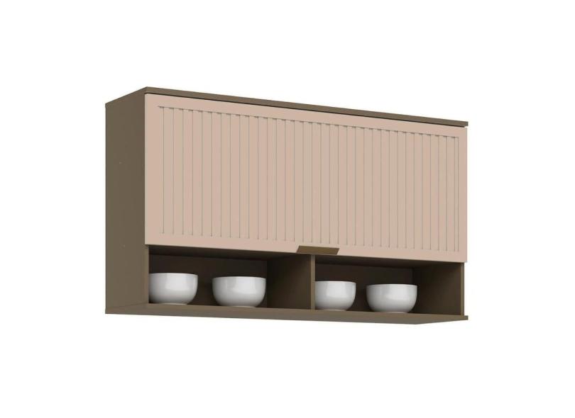 Armário De Cozinha Modulado Aéreo P/ Connect C/1 Porta Basculante Ripada 120cm Duna/Cristal - Henn