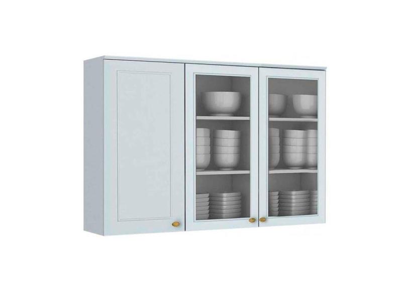 Armario De Cozinha Modulado Americana 3 Portas Vidro 2 C Vidro Branco Henn