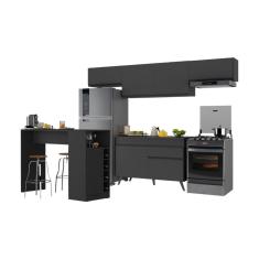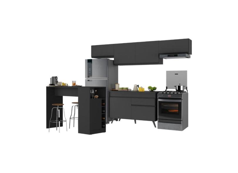 Armário De Cozinha Modulado Com Bancada Veneza Multimóveis Mp2212 Preto Preto