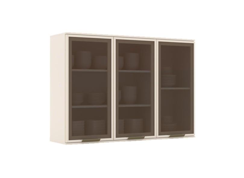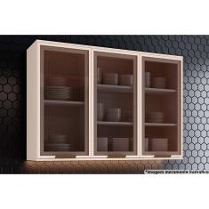 Armário de Cozinha Modulado Connect c/ 3 Portas Vidro 120cm Off White - Henn