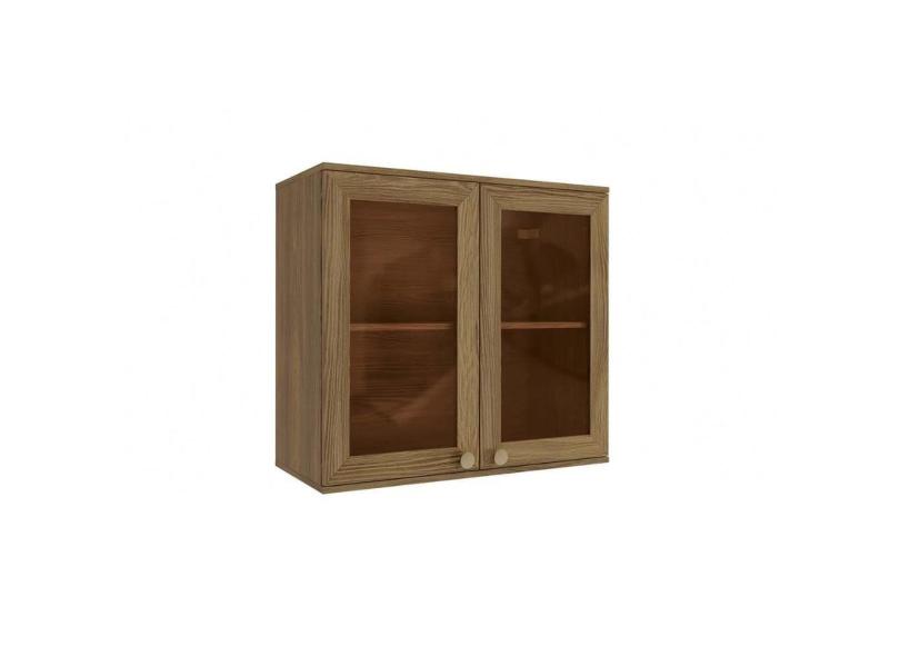 Armário de Cozinha Modulado Curve N649 c/ 2 Portas de Vidro Reflecta 80cm - Nogueira - Kappesberg