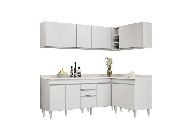 Armário de Cozinha Modulado de Canto 6 Peças CP29 Balcão com Tampo Branco - Lumil