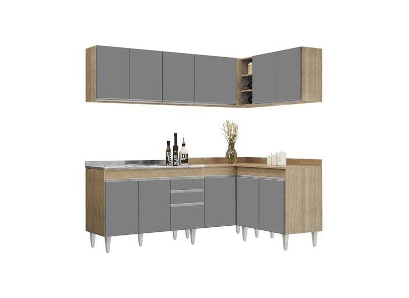 O menor preço encontrado no Brasil para Armário de Cozinha Modulado de Canto 6 Peças CP30 com Pia Inox Castanho/Cinza - Lumil atualmente é R$ 2.605,59.